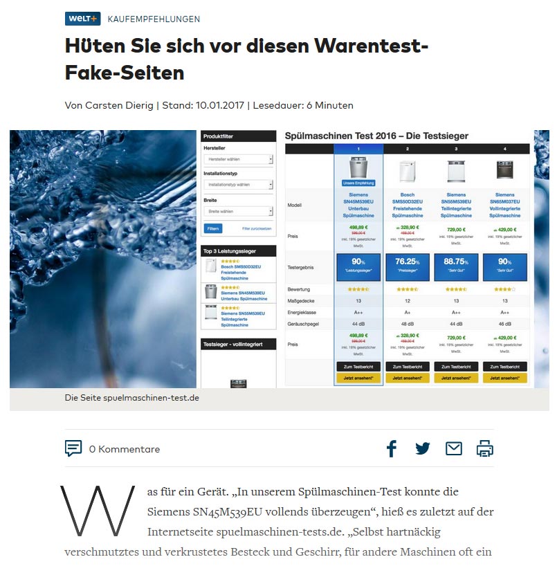 Momentan noch hinter der Paywall: Der Artikel von welt.de
